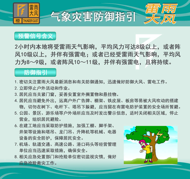 市气象台提醒,我市已进入强对流天气和暴雨多发季节,需注意防范雷击和短时大风造成的高空作业设施、厂房工棚、临时构筑物、户外广告牌、树木倒塌等风险,并注意防御强降水及其可能导致的城乡积涝、山洪、泥石流和山体滑坡等次生灾害。