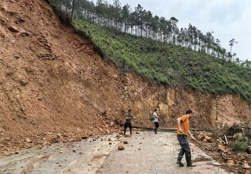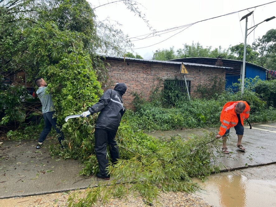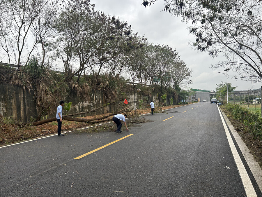 4 月 20 日暴风雨后,龙门县永汉镇建设和道路事务中心工作人员、农村道路养护人员以及各村(社区)工作人员陆续对辖区农村道路、桥梁、临水临崖等路段开展巡查,及时清扫路面落叶,清除倒伏竹树。