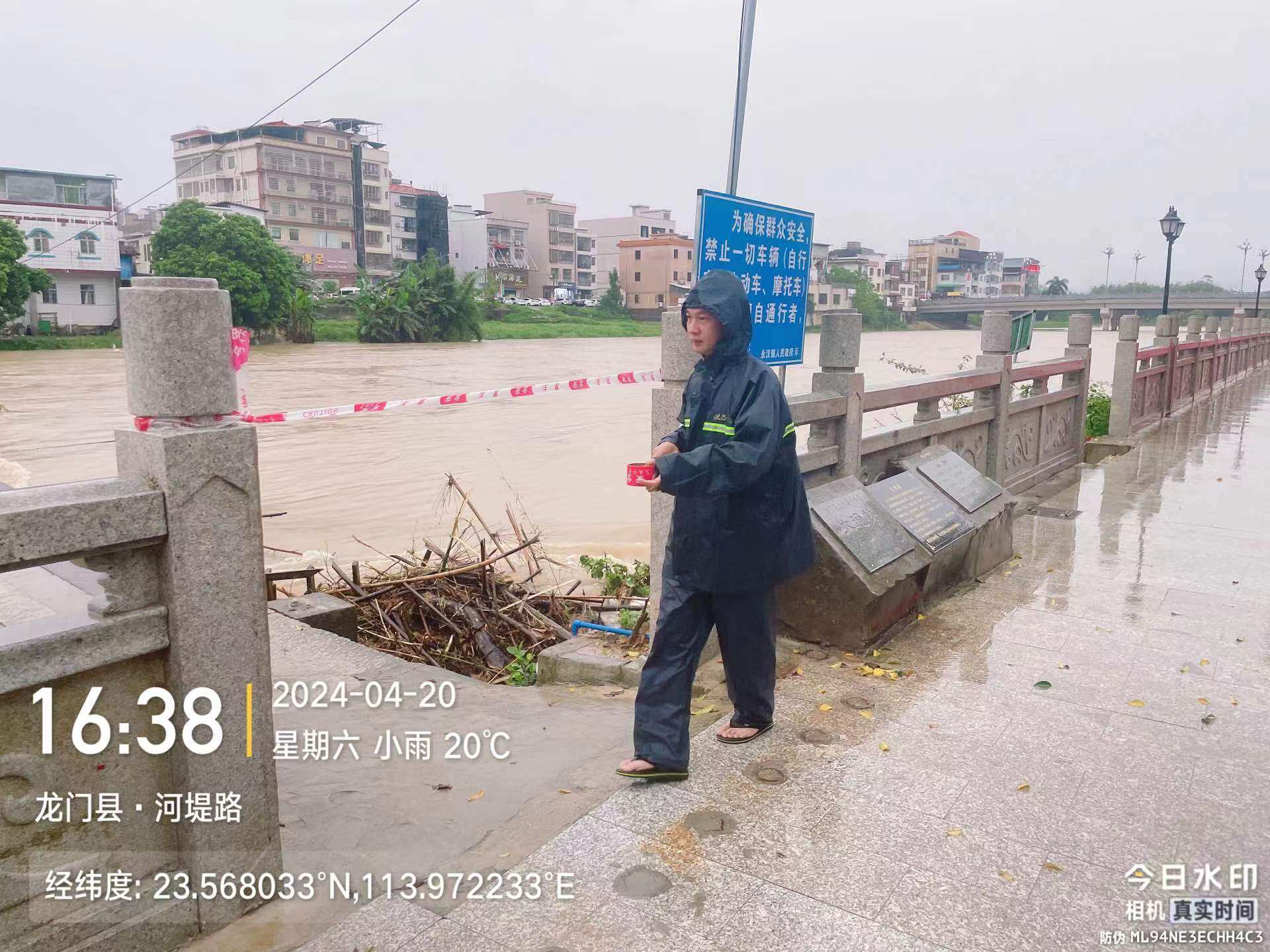 4月20日下午,龙门县永汉镇城市管理办工作人员联合城东社区干部到旧墟大通桥巡查周边及河水上涨情况,并对大通桥进行警戒封闭,劝导居民雨天禁止通行。