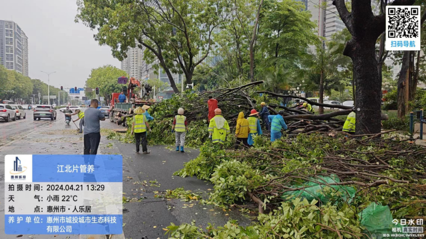 4月22日,仲恺高新区沥林镇城建工作组组织人员对倾倒占道树木进行清场;罗村干部及畜牧工作组工作人员在辖区持续开展防汛巡查工作,现场劝离野钓人员和住船老人,目前住船老人已撤离。