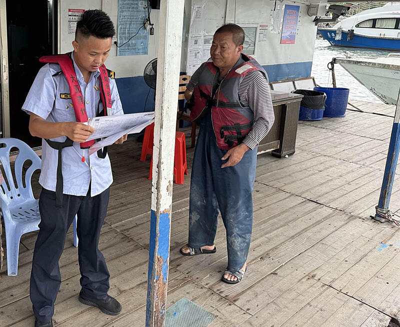大亚湾区海洋综合执法大队利用手机信息、微信群、电话等形式向各渔村村委、各休闲渔业企业、船主船东及时发布天气预警信息,落实防御工作。加密防汛防风巡查检查频次,特别是做好海边、渔港、无居民海岛等特殊区域全面巡查检查,及时发现隐患、及时整改消除隐患。加强船舶检查服务站(澳头闸口)管理,利用智慧海洋平台和省渔船监控系统对海上船只进行动态监控。