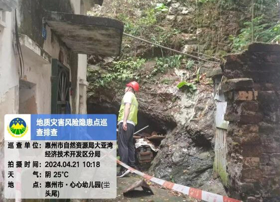 市自然资源局和市气象局于4月21日12时启动地质灾害气象风险三级预警。大亚湾开发区自然资源分局时刻关注暴雨预警、地质灾害气象风险预警,严格落实汛期地质灾害防治24小时值班,对风险较高的地质灾害隐患点进行巡查排查。当天,派出地灾巡查队伍共15人次,巡查了50处(次)地质灾害隐患点(风险点),巡查点暂未发现边坡变形和开裂等异常情况。